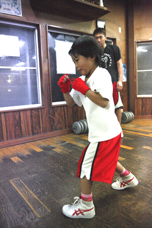 プログラム中の「エアボクシング試合」に、ライオンズジムからヒカル(7歳)が出場します。